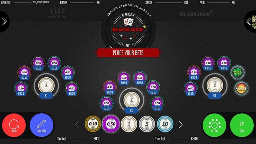 Blackjack+ จากFeltไม่ใช่แค่เกมไพ่ทางออนไลน์ธรรมดาทั่วไป แต่เป็นเกมคาสิโนคลาสสิกเวอร์ชันที่อัดแน่นไปด้วยฟีเจอร์ต่างๆ ที่ผสมผสานรูปแบบการเล่นแบบดั้งเดิมเข้ากับตัวเลือกการเดิมพันที่สร้างสรรค์และภาพที่สวยงาม กราฟิกที่สวยงาม ตัวเลือกการเดิมพันที่หลากหลาย และคุณสมบัติพิเศษทำให้เกมนี้โดดเด่นกว่าเกมโต๊ะ อื่น ๆ