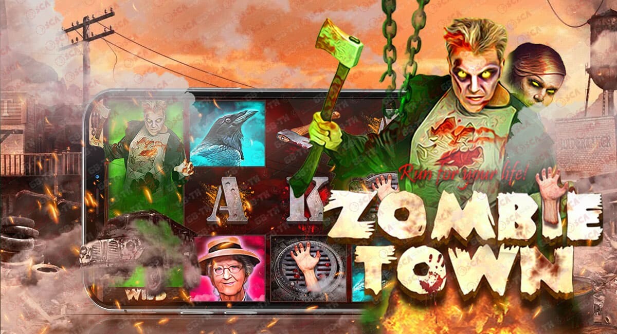 Zombie Town มีตาราง 5 รีลพร้อม 3 คอลัมน์ มี 10 ไลน์การจ่ายเงินขนาดเดิมพันขั้นต่ำคือ 20 และสูงสุดคือ 5,000มีสัญลักษณ์ปกติ 11 ตัว ได้แก่ ชาย หญิง หญิงชรา กา มือที่ถูกตัด รถที่กำลังลุกไหม้ ปลอกกระสุนปืนไรเฟิล ขวานเปื้อนเลือด และเอซ ราชาและราชินี สแคทเตอร์เป็นสัญญาณเตือนการกักกัน และไวลด์เป็นมนุษย์ซอมบี้และกา
