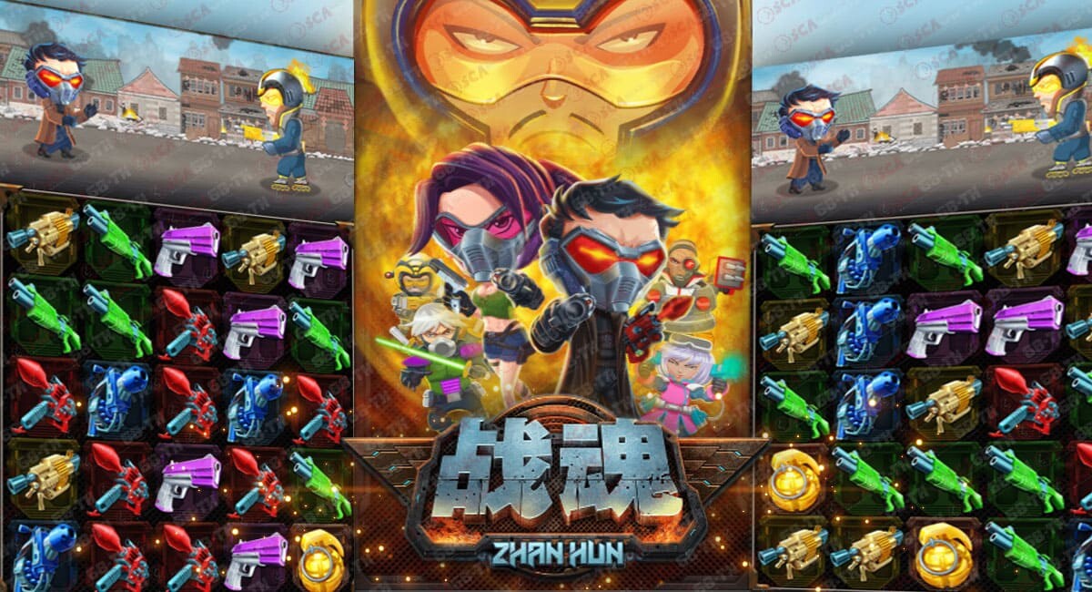 Zhan Hun มีกริด 5 รีล 5 คอลัมน์พร้อมโอกาสชนะแบบคลัสเตอร์หลายรายการมูลค่าเดิมพันขั้นต่ำคือ 10 และสูงสุดคือ 2,500มีสัญลักษณ์ปกติ 5 อันที่มีค่าตัวคูณต่างกันในเกมหลักและเกมฟรี ทั้งหมดคือปืน ปืนพกสีม่วง ปืนไรเฟิลสีเขียว ปืนกลสีทอง ปืนลูกโม่สีน้ำเงิน และเครื่องยิงลูกระเบิดสีแดง นอกจากนี้ยังมีสัญลักษณ์ระเบิดที่ต้องระวังอีกด้วย